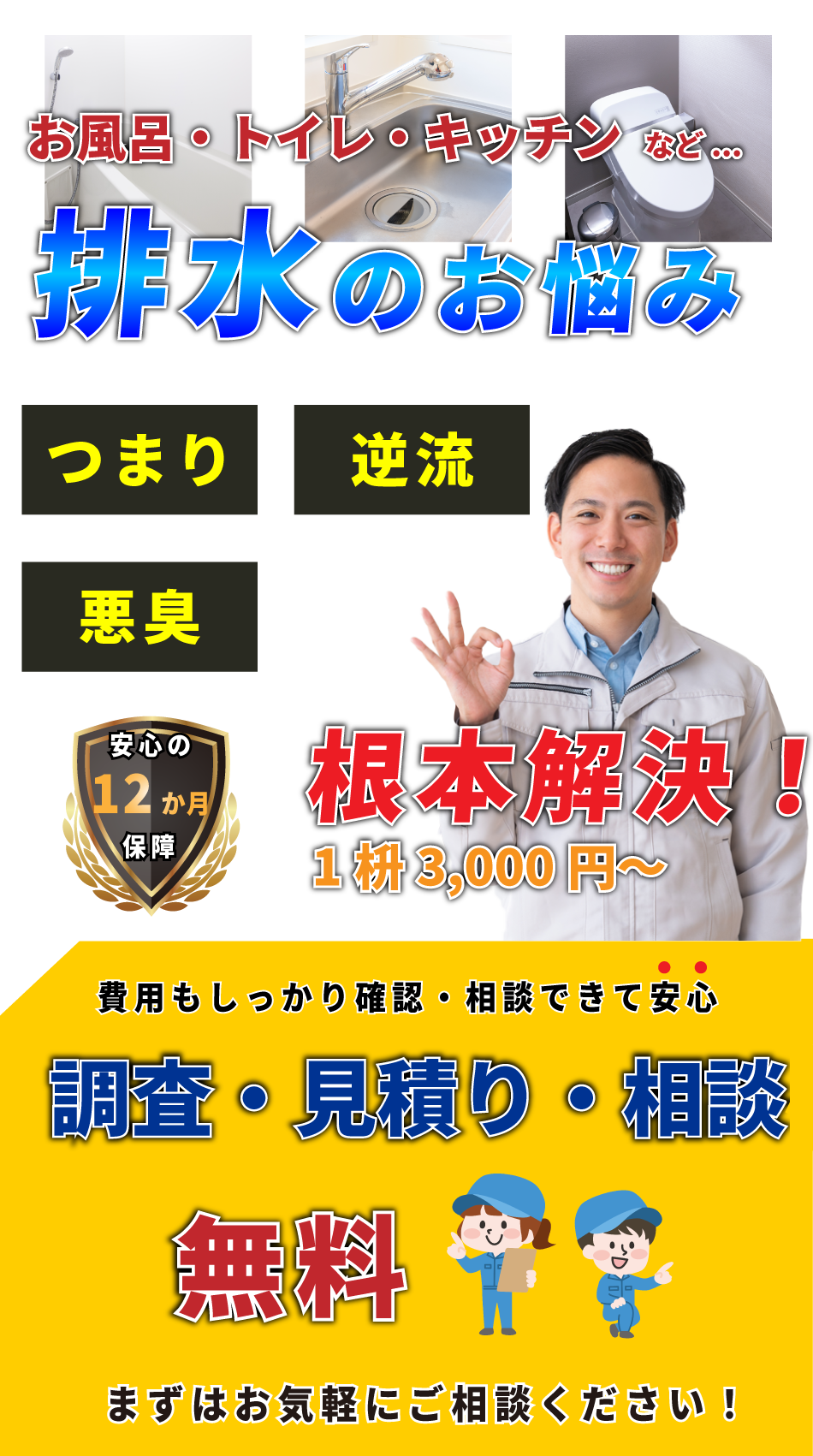 朝から排水がまったく流れず困っていたところ、電話した当日に来てくださいました。原因は汚水桝の詰まりだったそうで、専用機械であっという間に解決。作業も丁寧で説明もわかりやすく、安心してお任せできました。