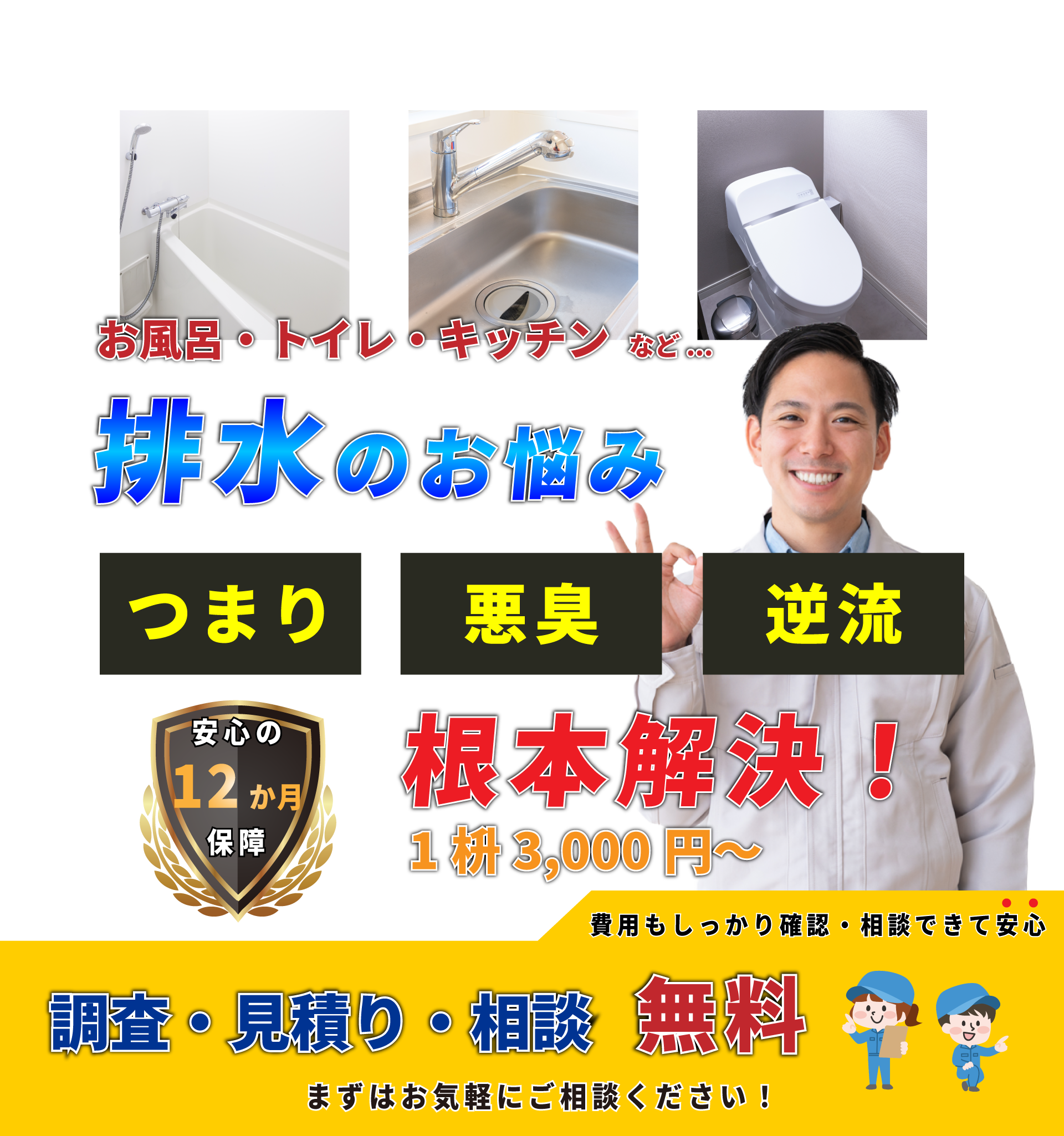 横浜・関東エリアのお風呂・トイレ・キッチン周りなど生活排水のお悩みなら株式会社KOUSEIにお任せください。つまり、逆流、悪臭など根本解決いたします。安心の12カ月保証。調査・見積り・相談は無料ですので、費用もしっかり確認した上でご依頼いただけます。まずはお気軽にご相談ください。